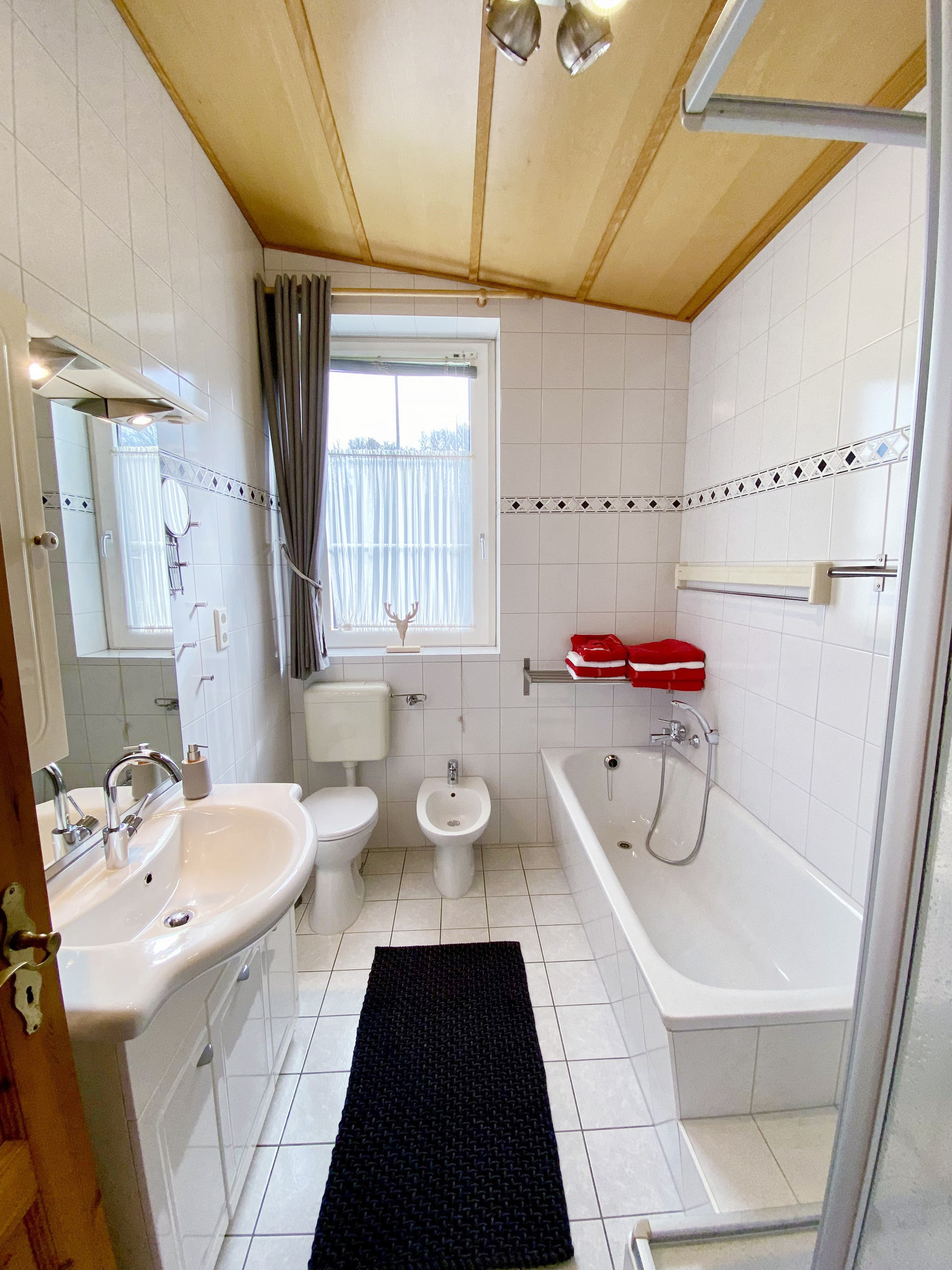 Das Haus Fuchsberg verfügt über 6 Schlafmöglichkeiten in 3 Schlafzimmern (Doppelbett, 2 Einzelbetten, Etagenbett), einen großzügigen Wohnraum mit langem Tisch, separater Küche und zwei Bädern. Ein überdachter Außensitz und Rasenfläche laden zum Verweilen ein.